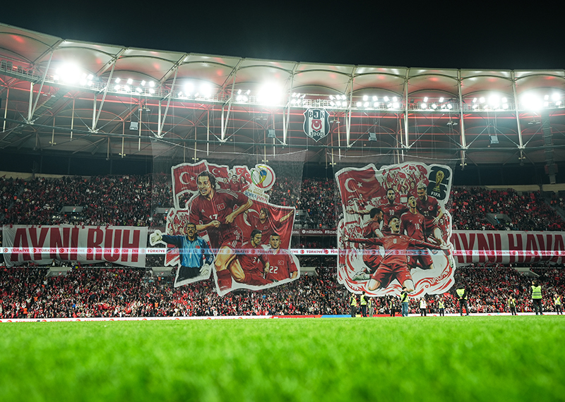 Türkiye-Romanya maçı öncesinde Tüpraş Stadyumu tribünlerinde koreografi gerçekleştirildi.